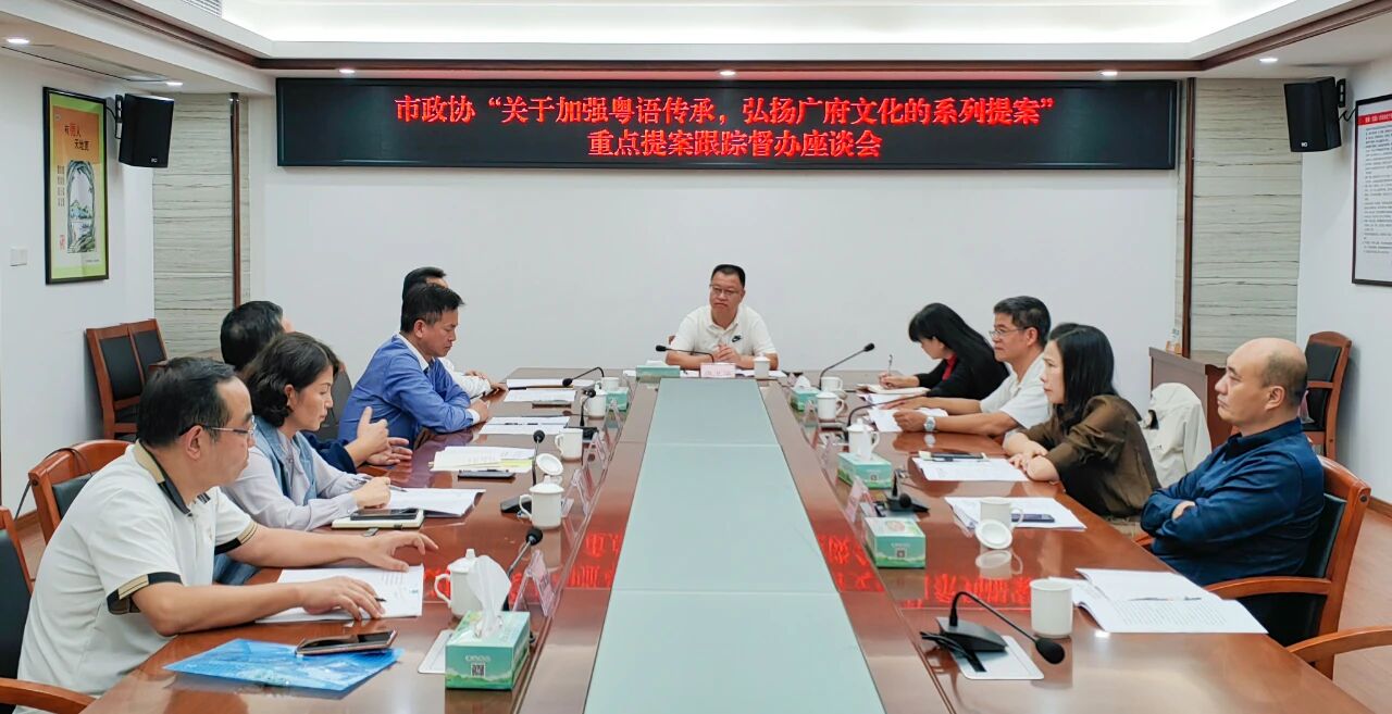 近日,市政协召开“关于加强粤语传承,弘扬广府文化的系列提案”重点提案跟踪督办座谈会。市政协副主席廖卫华出席会议并讲话。